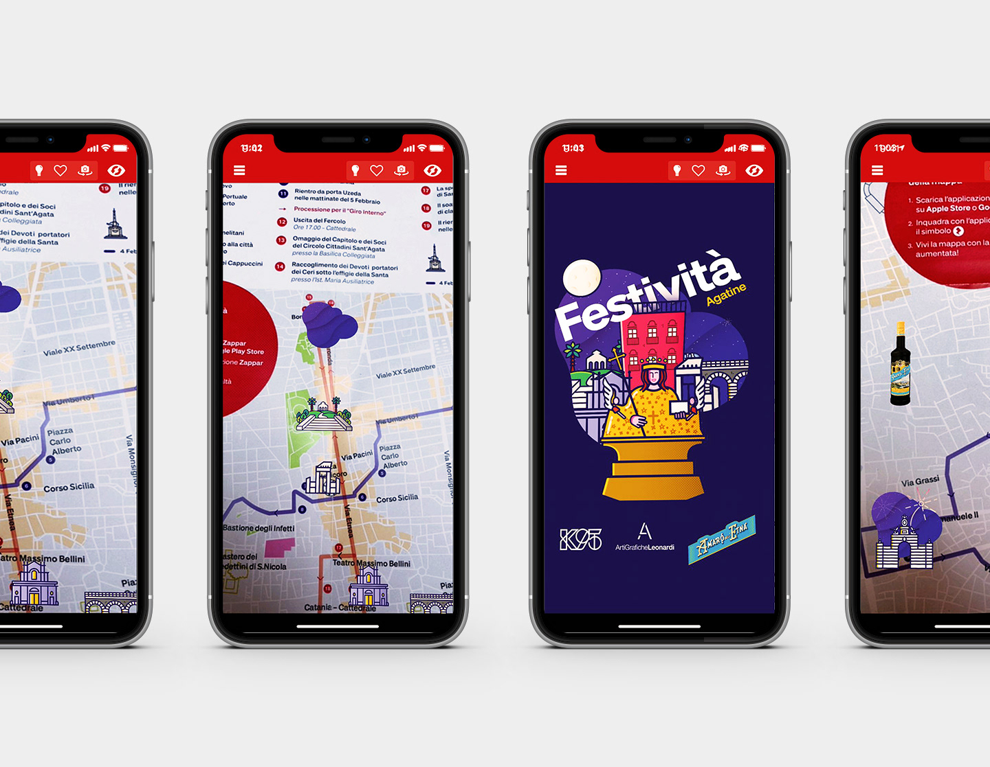 For the festivities of Sant'Agata we have created an interactive interactive map with the support of the company Amaro Dell'Etna. The map allowed citizens and tourists to consult the program of the festival following the two paths, which as usual, are made from the ferrule containing the reliquary bust of Saint Agatha.